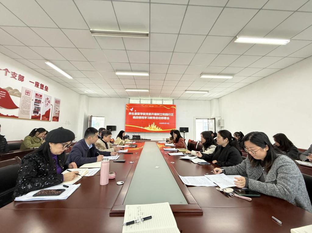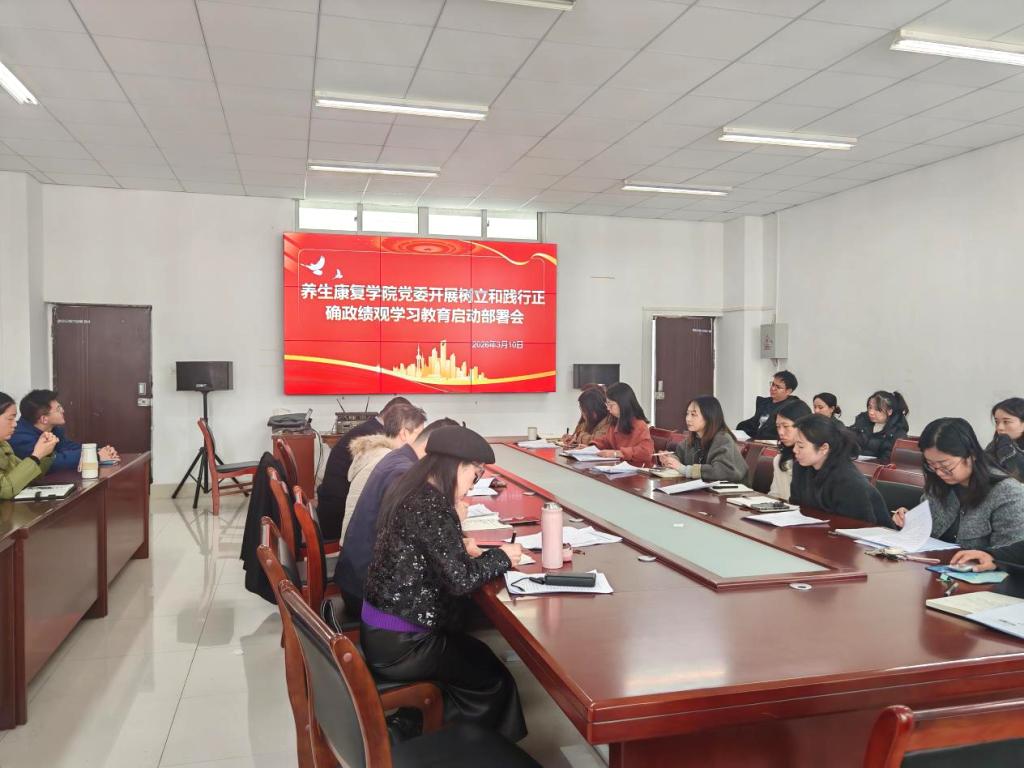 为深入贯彻落实中央、省委及学校党委关于开展树立和践行正确政绩观学习教育的部署要求,3月10日下午,养生康复学院党委在从正楼420会议室召开树立和践行正确政绩观学习教育启动部署会。学院党委书记李燕主持会议并讲话,党委领导班子成员、党政办副主任、专职组织员、各党支部书记、团委书记、全体党员教师参加会议。