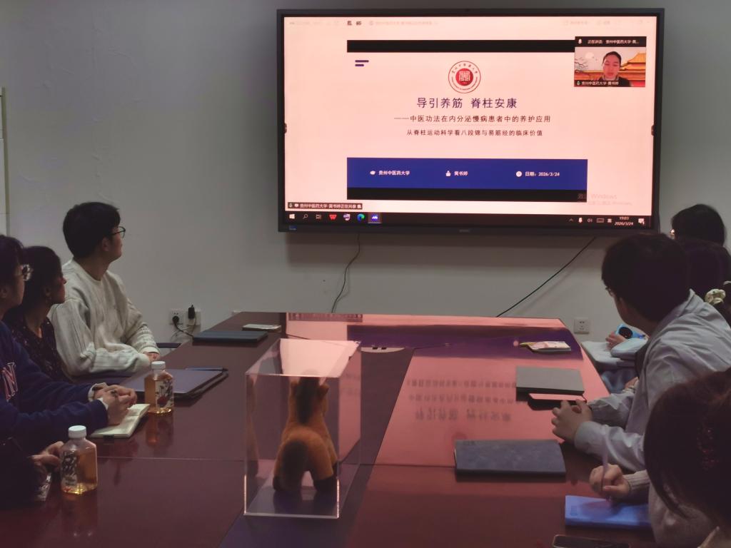 2026年3月24日,必赢bwin线路检测中心养生康复学院黄书婷老师受山东省立医院内分泌代谢病科、山东省内分泌代谢病学研究所、糖脂代谢与脑老化教育部重点实验室邀请,以《导引养筋脊柱安康——中医功法在内分泌慢病患者中的养护应用》为题作专题学术讲座。